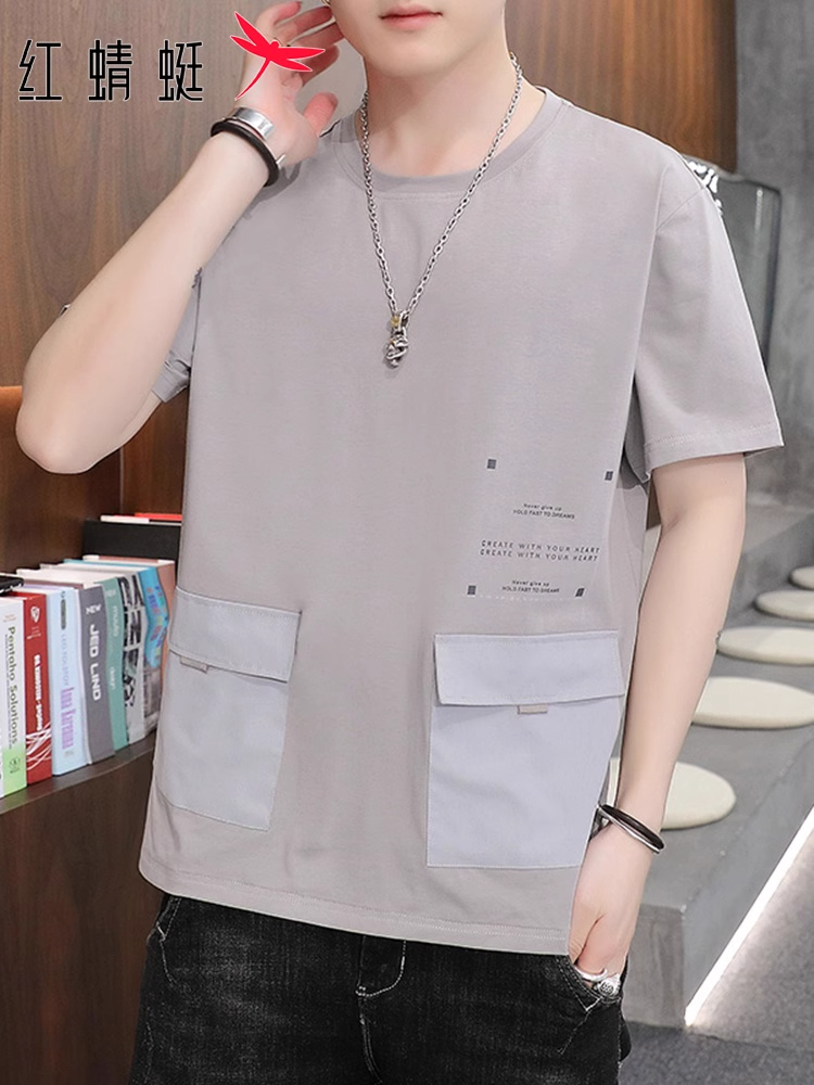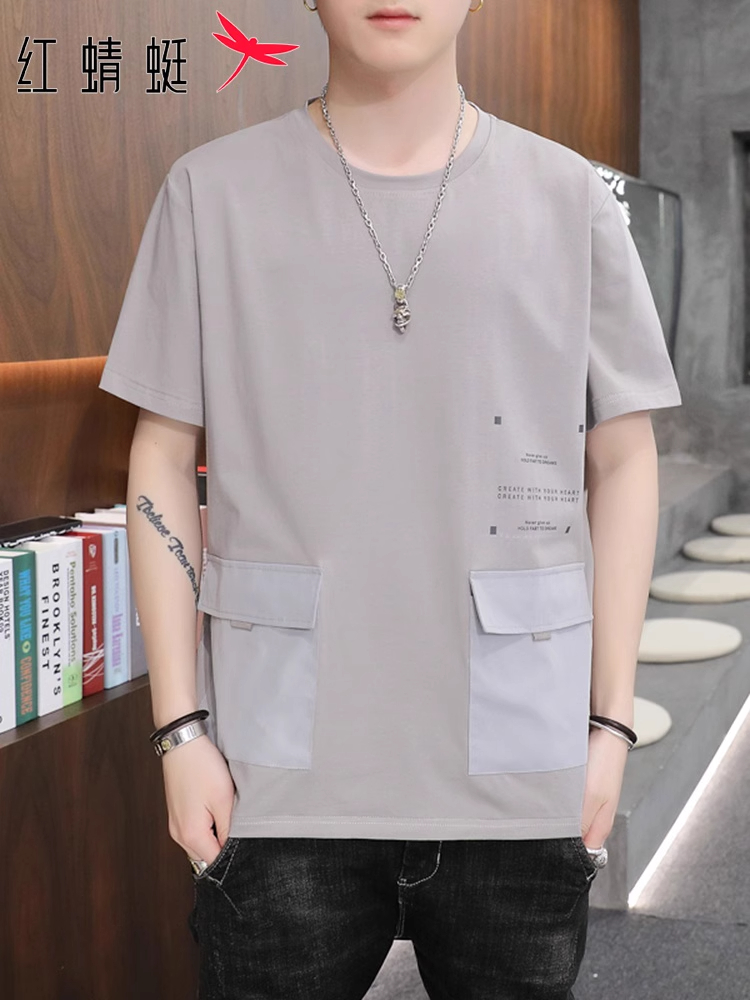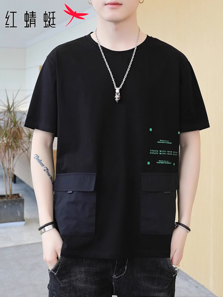 红蜻蜓短袖t恤男士夏季新款潮流时尚宽松圆领大码休闲凉感体恤男T
