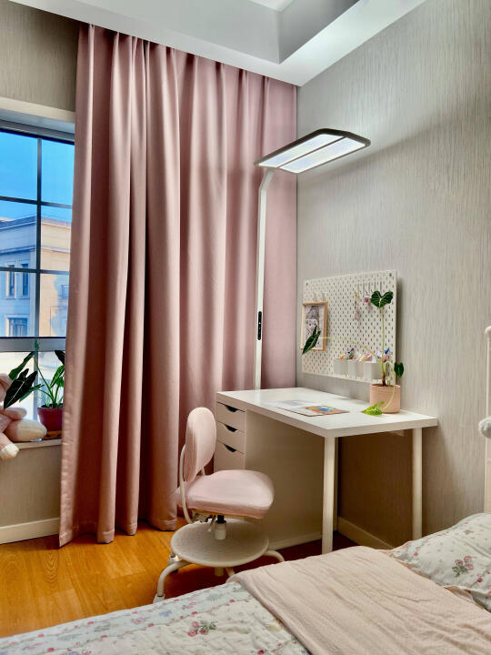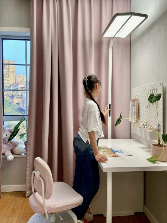 儿童房我选择的也是3000k暖光壁灯,入住后发现看书写字亮度远远不够,必须搭配专门书写、看书的光源。女儿的视力自从上学以后掉得厉害,选了很久,还是入手了立信达大路灯,简约的白色外观吸引了我,书脊式的造型,很有设计感[哇R]