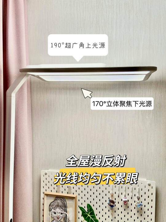 看详情页才知道它是上下双向出光,没有手影是因为它有五层防眩,所以整个光线明亮柔和,在光下化妆和室外都没有色差,学习看书长时间用眼也不会疲劳[赞R]
