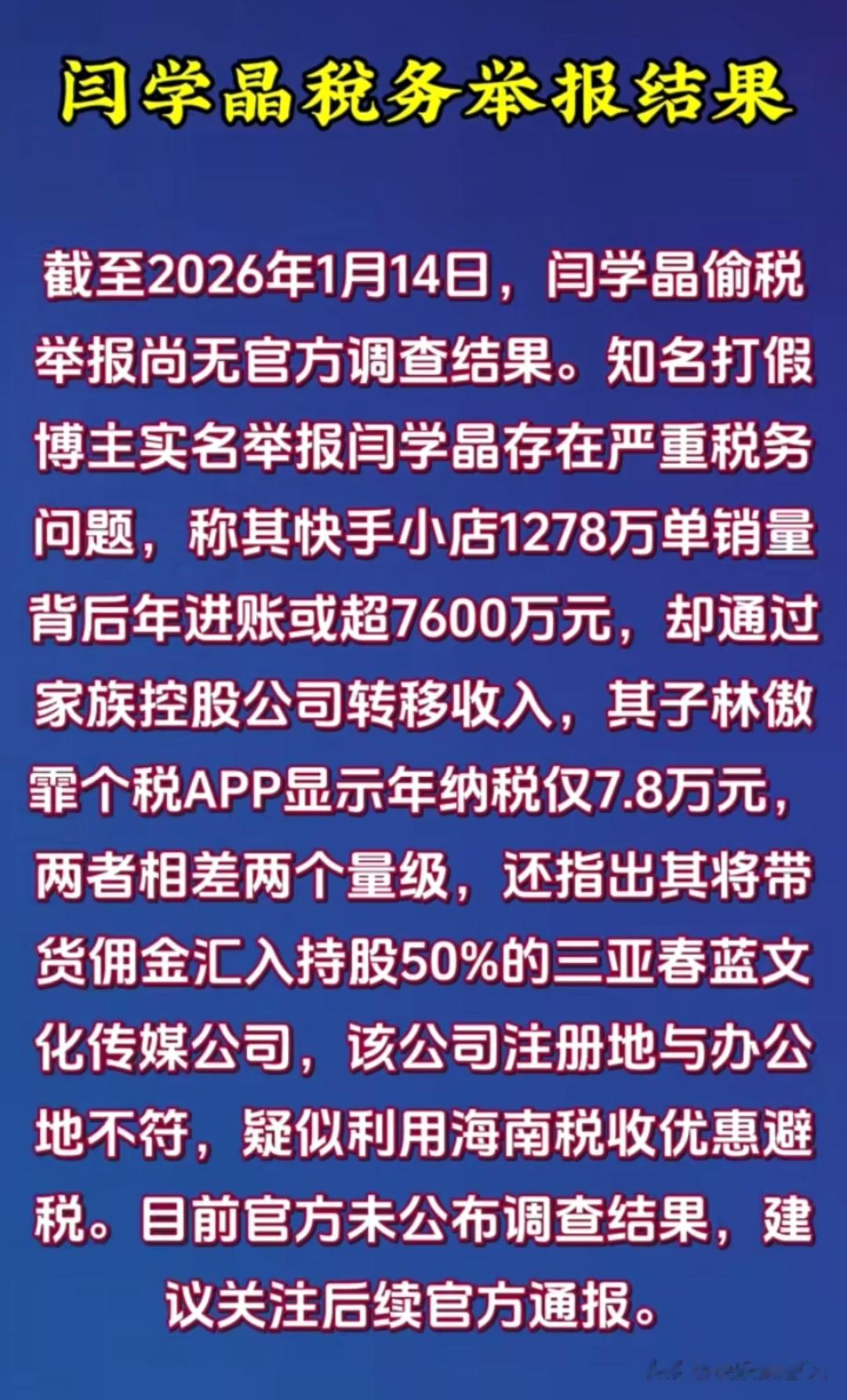 现在的局面,闫学晶的团队估计也头大。道歉、删视频、关评论,舆论能暂时压住,可税务这摊事,不是删个微博就能过去的。打假博主已经盯上了,税务部门要真查起来,不排除有更大的瓜。别忘了,前两年娱乐圈查税补税的案例,哪个不是一查一个准?