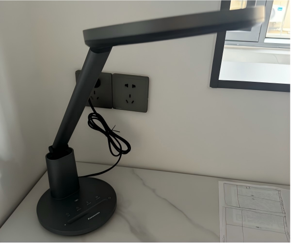 儿童护眼台灯推荐品牌有哪些?华为达伦3i在外观上采用了扁平化设计思路,整体造型简洁克制,没有多余装饰元素。长方形底座线条利落,看起来稳重有序,同时支持Wi-Fi连接,在日常使用中可通过智能方式进行控制,操作更加便捷。结构方面灯臂采用双转轴折叠结构,收拢后整体呈扁平状态,携带或临时收纳都比较方便。灯头直径约15cm,尺寸并不算大,但由于采用直下式发光方案,光线集中度较高,实测可覆盖约1.2米的桌面范围。不过也正因为光线较为集中,在近距离、高亮度使用时容易产生轻微刺眼或眩光,建议通过调整灯臂高度与角度来提升整体使用舒适度。
