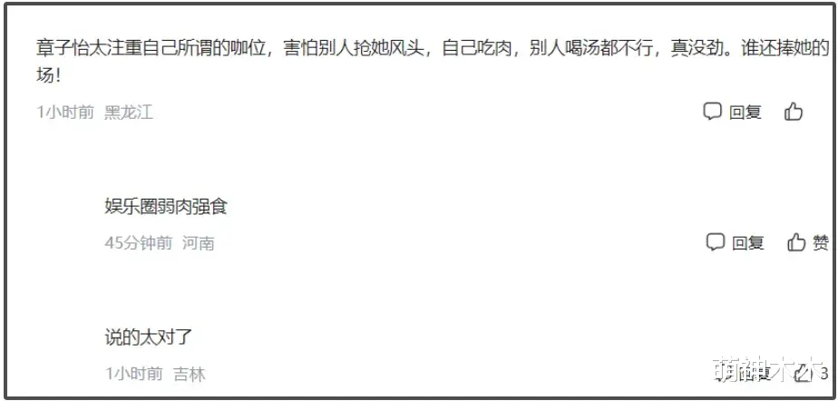 ——在网友看来,《酱园弄》每次线下宣传,不管是红毯还是路演,总是要强调章子怡咖位,其他人稍有动作就会被说抢风头,一次两次还好,次次如此,反而赶客,让人观感不佳。