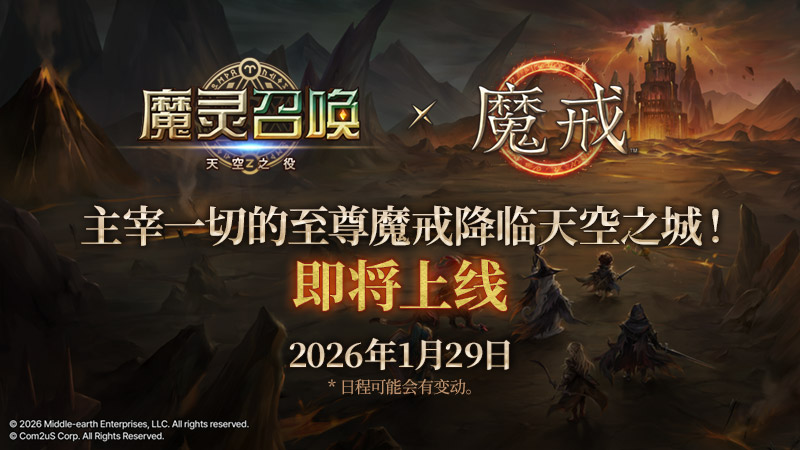 Com2uS正式宣布,《魔灵召唤》与《魔戒》的联动版本将于1月29日上线,并公开了预告视频。
