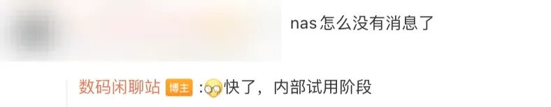 参考来看,博主@数码闲聊站 在回复网友小米 NAS相关问题时表示“快了,内部试用阶段”。