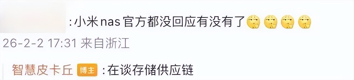博主@智慧皮卡丘 的爆料也显示,小米NAS项目还在,目前还在谈存储供应链,预计今年发布。