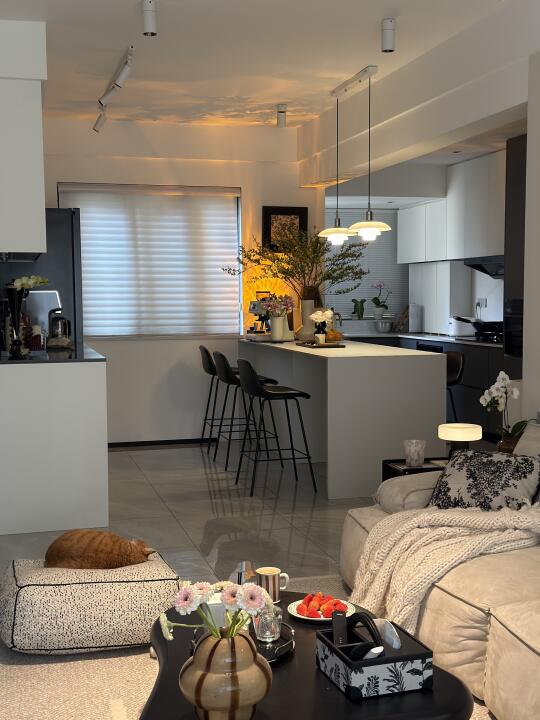我🏠套内76平,三室两厅两卫 房子虽小,但户型我个人还是很喜欢的(附上户型图) 格局改了以后,装修得显大又实用~ - 分享几个装修的小心得💡 1️⃣简单的硬装,简约的视觉效果,而且更耐看 全屋通铺的地砖,即有延伸感,还会显大 简单的直线线条感为主 不吊顶,也没复杂的背景墙 - 2️⃣餐厅和厨房打通 设计成超爱的开放式厨房 + 岛台格局 两个空间相互融合,视觉显大翻倍 - 3️⃣阳台打通连接客厅,视觉既拉长了客厅空间 而且阳台功能也没变 布置了清洁区和洗衣区多功能利用~ - 全封闭阳台拥有一套洗烘套装真的很实用又省心 不会因为晒衣服挡着客厅光线 也不用担心碰到坏天气烦恼着衣服不干有臭味 家里用的是Leader云朵559洗烘套装 超薄的机身,只有570mm 可以平嵌进我的阳台,不突出,简约有质感的外观,百搭的白色融合白色柜子融为一体,整体非常好看~ - 3D云朵内筒设计,凸起的3D小方块会像手指肚一样 对衣物进行全方面揉搓,大大提高了洗涤力度 加大加宽的水幕拨叶,更是深层次洗涤 像不小心弄到白衬衫上的咖啡渍 也能清洗得很干净,洁白如初~ 特别爱它的分层快净快烘功能 35分钟就能完成整个洗衣和烘干流程 15分钟速洗20分钟速烘 对于出门着急或着急穿的衣服,也是很及时 真的太贴心了 - 56°C的低温柔烘, 衣服干了就会自动停,防止过度烘干,损伤衣服 烘出来的羽绒服蓬松柔软, 特别是烘后的床上四件套, 摸起来很柔软,一点都不会皱巴巴的~ 让我很惊喜的是,四重空净过滤系统, 可以过滤👋毛絮、粉尘和猫毛 养猫家庭都懂这个的含金量吧,真的太爱了 六维减震还有效降低震动与噪音 在客厅一边看电视听歌也不影响~ - 用心装修的Dream house🏠 虽小但装修整洁清爽,住起来也舒心~ 客厅告别晾晒的感觉真的好清爽~ 我们省去了晾晒家务,更加提升了居家生活的幸福感