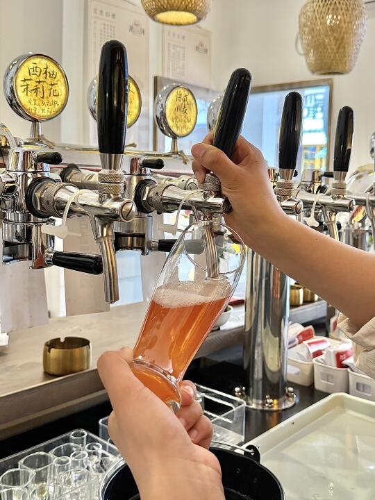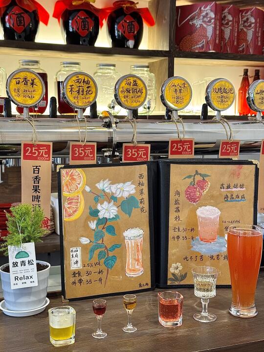 在绵阳的初夏找到适合女生去的小酒馆 一杯初夏限定—西柚茉莉花(花香、茶香) 不喜欢喝太甜的宝宝们可以闭眼冲 这家新中式打酒铺藏在万达金街里 门口挂了满满的酒牌 有种翻盘子的快乐 酒类有几十种 度数也各不同 各种精酿 梅子酒 果酒 米酒…… 连不喝酒的宝宝也可以尝试哦 小姐姐很热情的给我试喝了很多酒 每一杯味道都很独特 特别爱她们家的果味精酿 好好喝 答应我 一定要去试一试