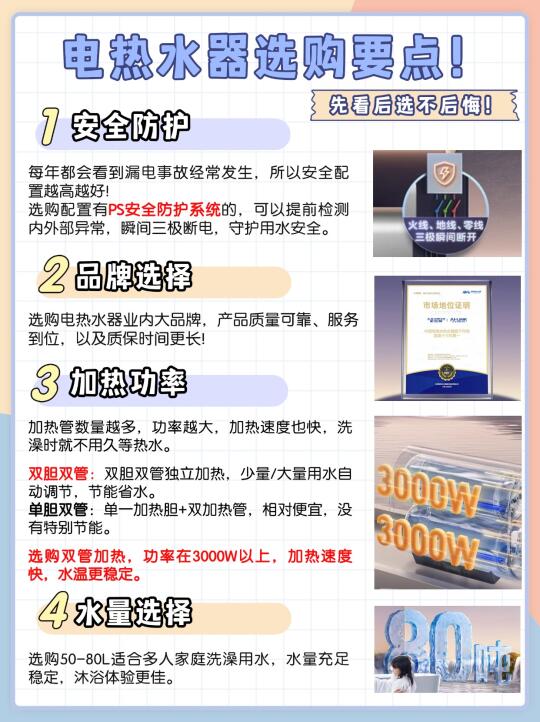 电热水器选购加分细节,抓好细节,家用体验佳。