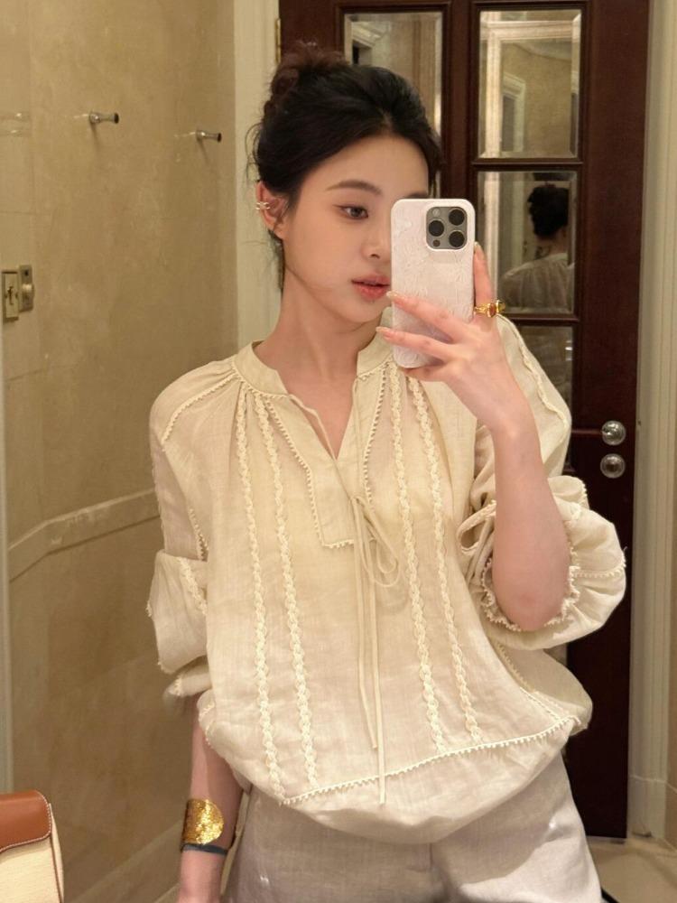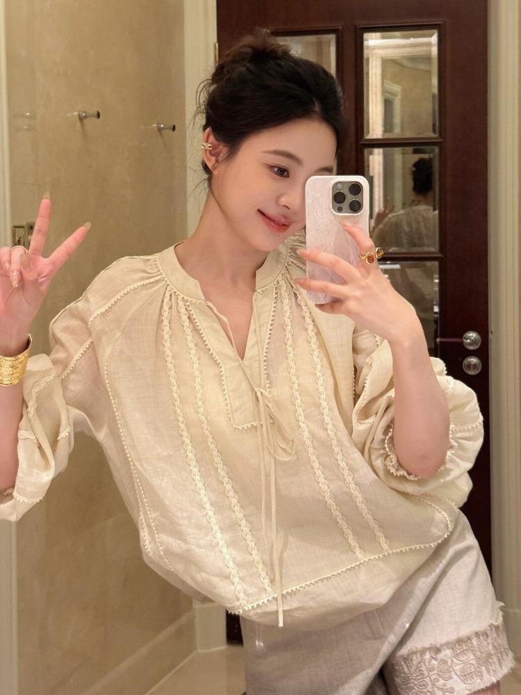 【2025流行爆款】米色亚麻衬衫,高级感爆棚,独特设计,尽显优雅气质,夏日必备百搭上衣。