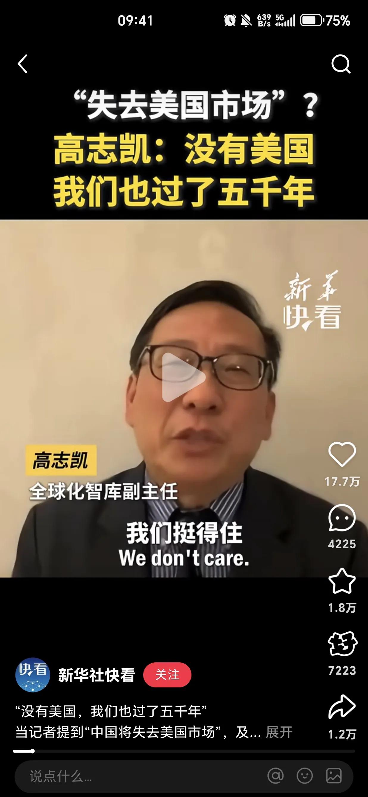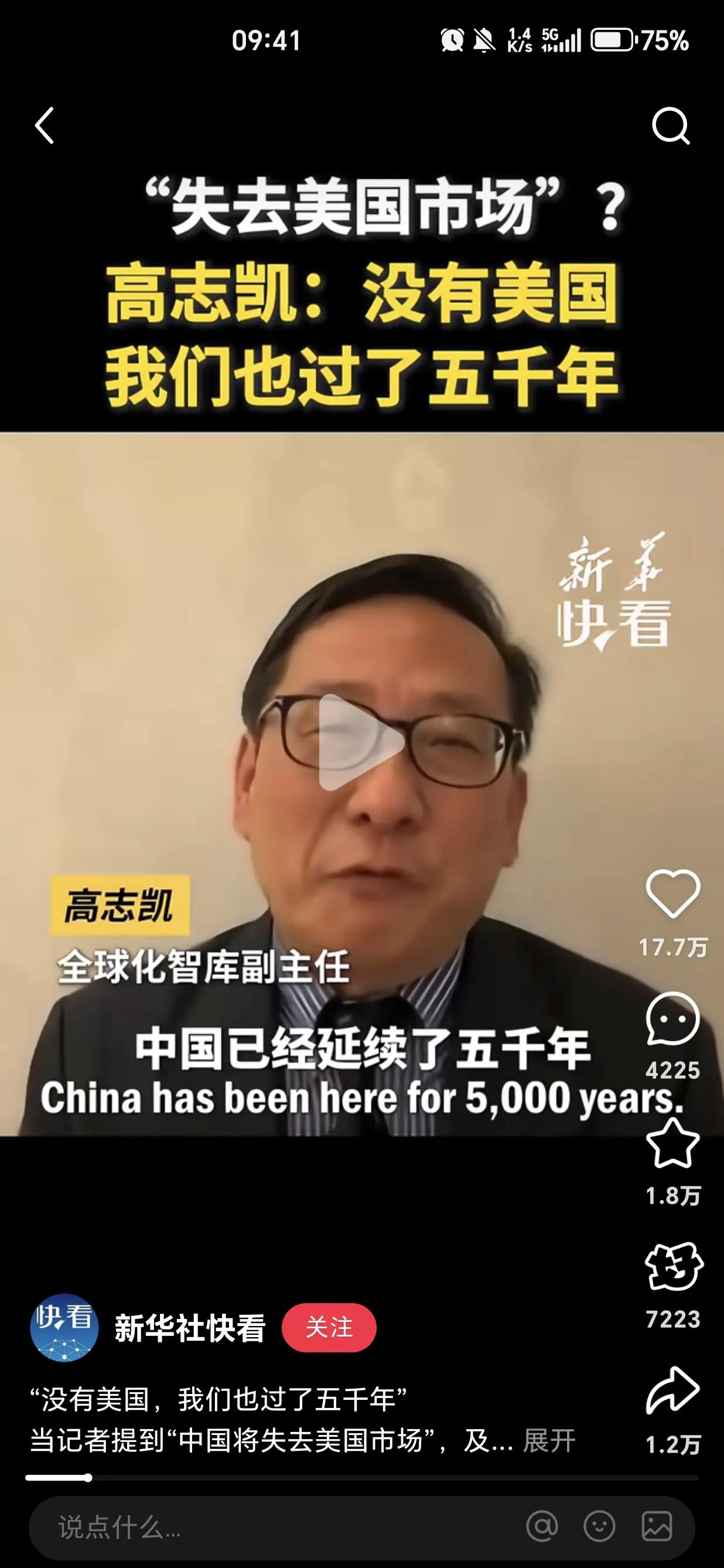 中美贸易战个别人的观点切勿盲从! 高志凯个人观点,不是我们普通人的观点。 最近一位专家学者的发言让我大为惊讶。高志凯:苏州大学讲习教授,某某什么全球化副主任。其言论观点说:中国已经做好充分准备,我们不在乎,我们挺得住,我们已经做好充分准备……再过5000年没有美国的日子。 所谓的学者、专家抱着书本中5000年的辉煌文明却干着自己吃饱,人民不饿的事情。不顾及国内5600亿美元出口贸易下的企业和千万家庭,更是罔顾人类进步与科技带给社会的发展,和“改革开放”带给人民美好的生活现实。随意发表个人观点,错误引导大众,张嘴闭嘴就是5000年文明,却不知中国人民吃饱肚子还不到50年。 1962年出生的高志凯或许已经忘记在那个动荡的年代的困难,或许已经忘记三年自然灾害无数家庭饿肚子的境况。他根本不知道“兴、百姓苦,亡百姓苦”下5000年辉煌历史背后人民所承受的一切。中国5000年历史中,人们的平均寿命低的可怕,而官方数据新中国成立前,我国人口的平均寿命仅为34岁,这一数据在1931年由南京金陵大学计算得出。新中国成立后,到1990年,我国人均预期寿命已达70岁。这个过程有多少不是欧美科技带来的巨大作用。没了美国,或许高同志早已不知在何处? 中国5000年历史记载的都是帝王史,更是成功史,又有哪个平民百姓是历史的重点,“路有饿死骨”谁又知道成千上万白骨下的你我。 中美贸易冲突就是吵架打架,也不是你我平头百姓拱火的对象。他关系千万家庭的生计,他关系中国经济发展,也关系到中国是否能够在全球化之中的未来。 只有中国和世界同步发展,我们才能享受全人类进步带来的红利。 没有美国不影响中国5000年的历史,没有美国却可以改变你我的命运。 希望中美贸易战早日结束,拒绝逆全球化。因为全球化结束,并不影响大多数国家的发展,并不是所有人的全球化结束,而是我们普通人的全球化结束。