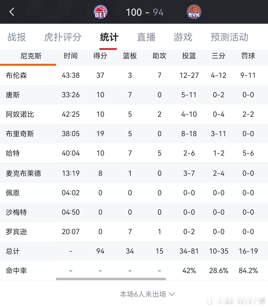坎宁安33分12板,施罗德替补贡献20分并命中致胜三分!布伦森空砍37分7助活塞vs尼克斯 活塞1比1尼克斯