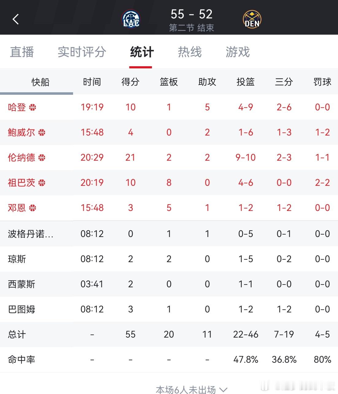 伦纳德半场10中9,拿下21分!快船vs掘金