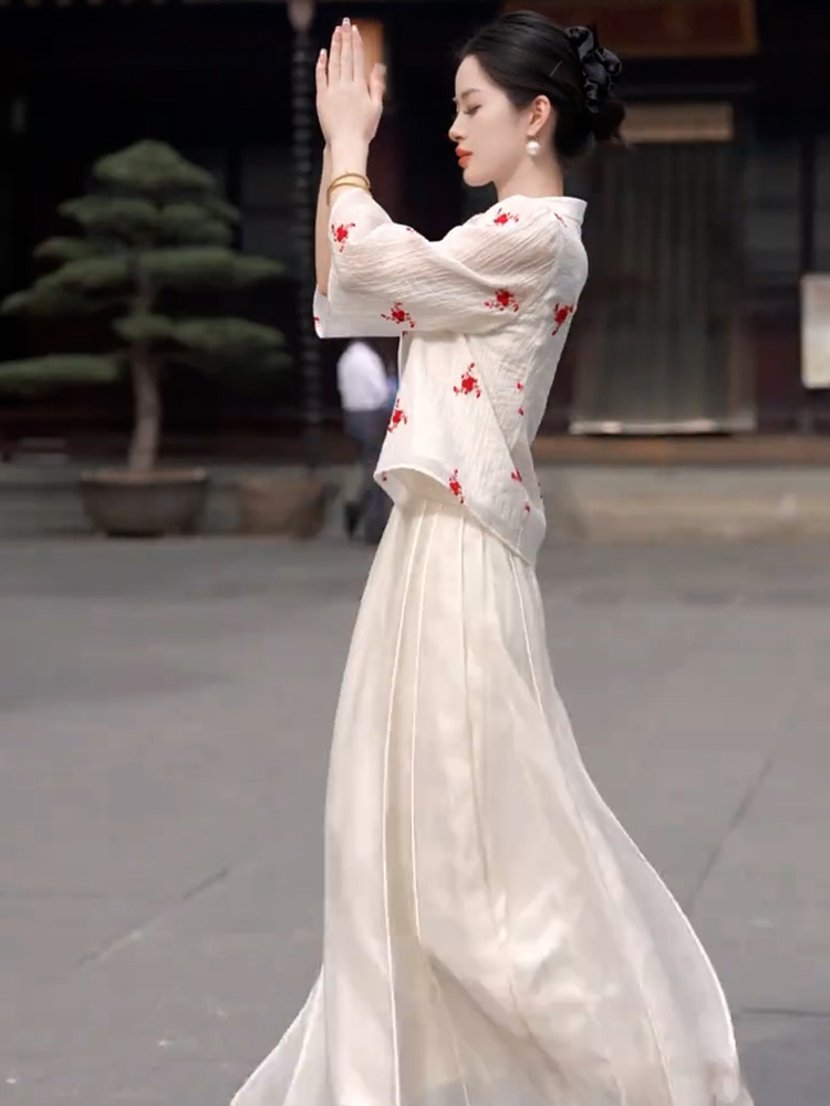 白衬衫的优雅与连衣裙的柔美结合,尽显女性大方得体的轻奢气质,新中式设计,展现独特女人味。