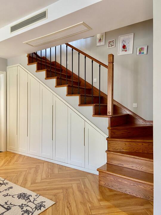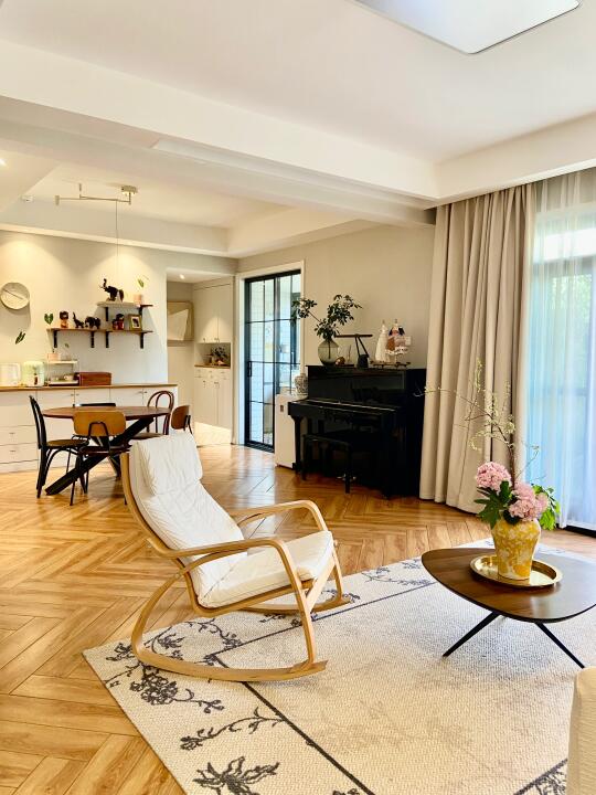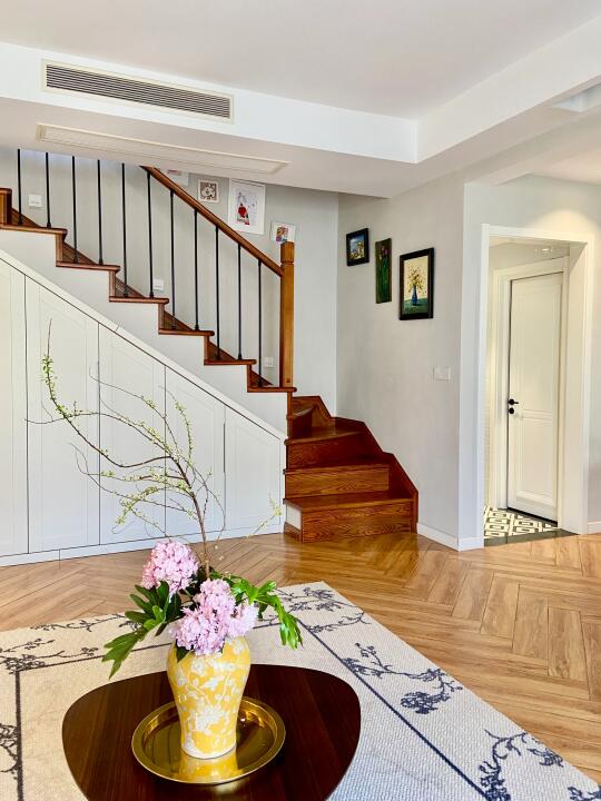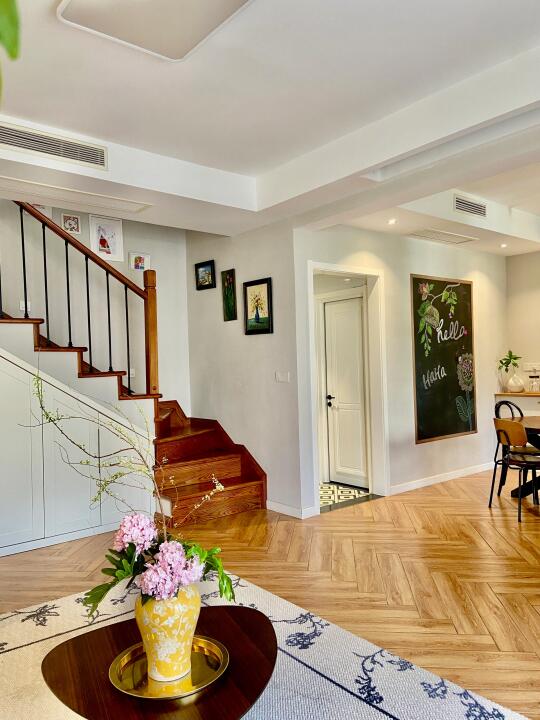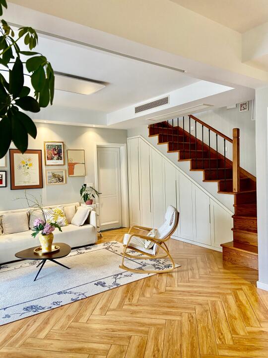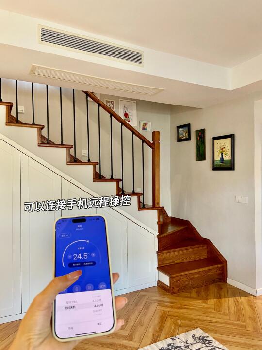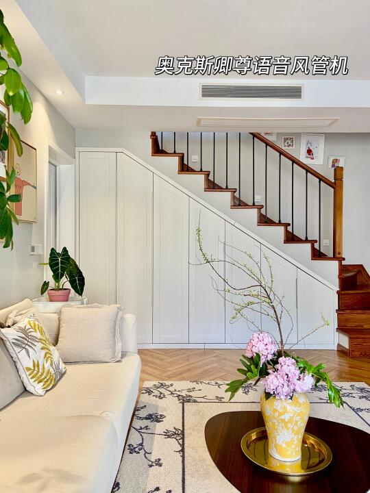 🏠关于我家 坐标:重庆 面积:建筑110平,爆改+赠送210平 总价:150w 户型:叠拼上叠三层/两厅四室三卫一楼顶花园 风格:舒适温馨的自然风 花费:软硬装一起75W(我已经很省了[失望R]我们邻居都是百万装修哦[扯脸H]) 经常有小伙伴留言 装叠拼上叠看来看去最想复制我家 很开心自己装修的房子能得到大家的喜欢 没有请设计师,自己做功课装修的,分享一些不后悔的决定: ▫️通刷浅灰墙,全屋木纹地板,简洁耐看 ▫️投影仪和电动幕布代替电视墙,客厅活动空间更大 ▫️局部吊顶,不压层高 ▫️不装柜机而是安装奥克斯卿尊语音风管机,对比柜机更节省空间.内嵌到吊顶里,节省空间且美观。 叠拼每层的面积不是很大,柜机占地方,不太理想,装修时也在风管机和中央空调之间摇摆不定,最后本着装修该省就省的原则,加上预算也有限,客厅选择的是奥克斯卿尊3匹的,一拖一的风管机,比中央空调的价格便宜太多[赞R]。毕竟叠拼装修太费钱,能省一点是一点[失望R]。 我家这款奥克斯卿尊语音风管机,带语音智联功能,躺着就能语音打开空调,方言也能听的懂,线控板更是升级成全屏液晶线控,高级大气,绝不用担心买风管机不送线控板[萌萌哒R]。 而且它还标配了防漏水预警功能,三重防漏水设计+智能实时预警,避免泡顶的风险。 这款机器性价比也很高,新一级能效➕全直流变频,节能又省电。而且奥克斯一价全包的服务给了我装修的自信,再也不用和装修刺客勾心斗角了,省心省力[派对R]! 现在躺在床上语音就能控制开机。夏天快回家了也能提前打开,回家就能享受扑面而来的凉爽[哇R]! 再分享一些风管机订购和安装注意事项: ✅装修开始就可以订购了,建议线上旗舰店选购,既不用出门,又能享受到安装一价全包的服务 ✅提前布好空调电源线 ✅让电工开槽预埋WIFI线控器的底盒,装插座的时候在安装控制面板 ✅普通的网格风口容易藏灰不够美观,建议做极简线性加长风口。 关于我家装修,大家还有想了解的评论区见[飞吻R]