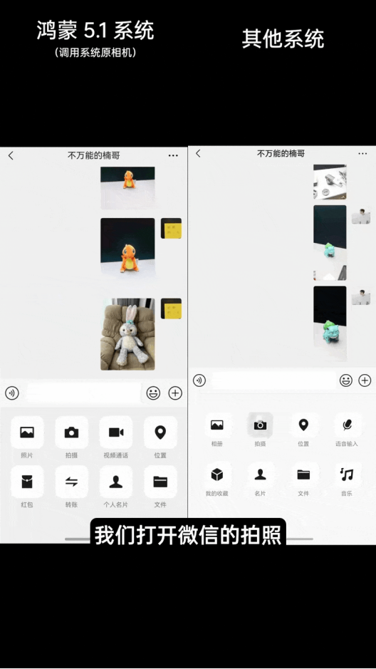 其中,最让我惊喜的当属鸿蒙微信能够真正调用原生相机。以往在安卓手机上,长按相册调用原相机往往只是调用主摄像头拍摄,功能单一,仅支持拍照和人像模式,无法录制视频。而鸿蒙微信调用的原相机功能丰富多样,直接点击拍摄即可调用全焦段镜头,无论是拍摄远处的风景,还是捕捉近处的细节,都能呈现出高清画质。更贴心的是,拍摄完成后默认发送的是原图,无需手动设置,大大节省了时间和精力。