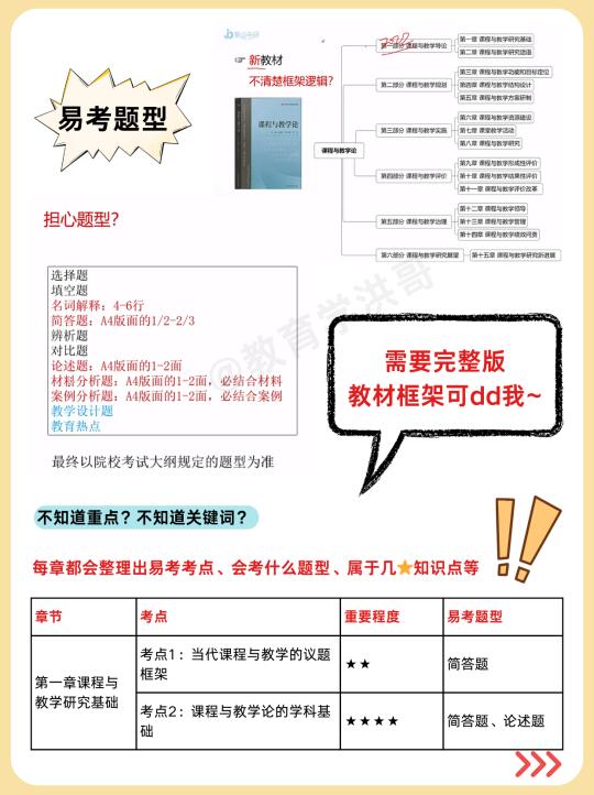 有很多学校的小学教育专业都是考吴刚平课程与教学论,一些是25届新改的参考书,大家对这本教材比较陌生,那备考这本教材需要把这篇弄懂! 1.只考吴刚平《课程与教学论》一本书的学校 2.吴刚平《课程与教学论》真题收集 3.吴刚平《课程与教学论》真题分析 4.吴刚平《课程与教学论》教材有哪些特点 5.吴刚平《课程与教学论》学习备考阶段 6.吴刚平《课程与教学论》备考难点 想考130+,这篇一定要弄懂!!!
