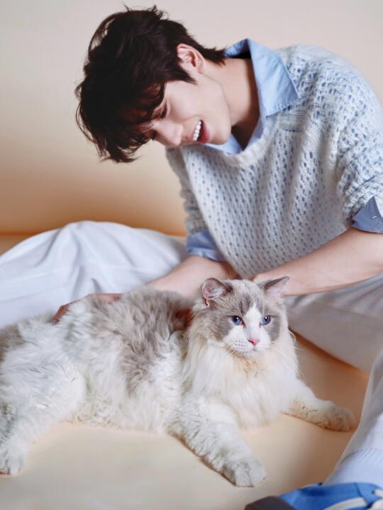 张凌赫撸猫名场面!这身look也太会穿了吧