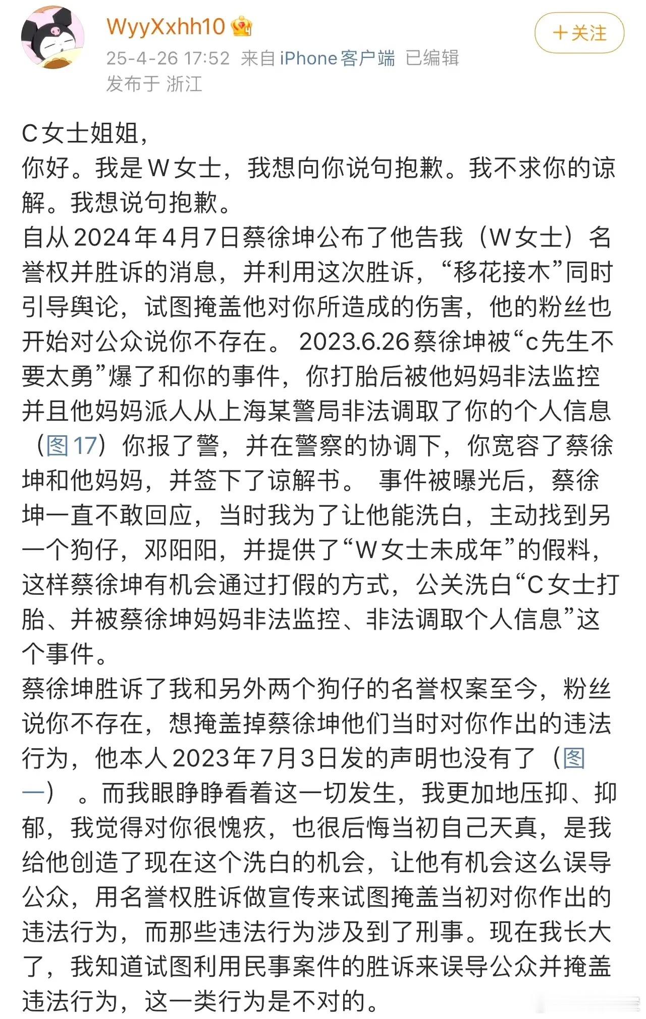 蔡徐坤事件W女士[吃瓜]蔡徐坤直播后突遭封禁!W女士自曝编造假料转移视线,为其道歉上热搜!这场横跨数年的大戏越演越烈,可即便风波不断,他的粉丝和影响力依旧在线,初代选秀顶流的实力,果然不容小觑!