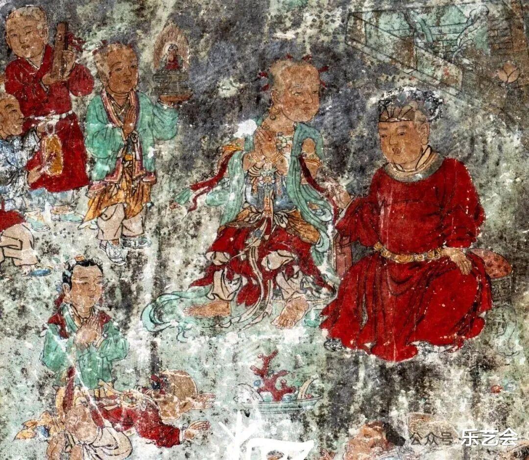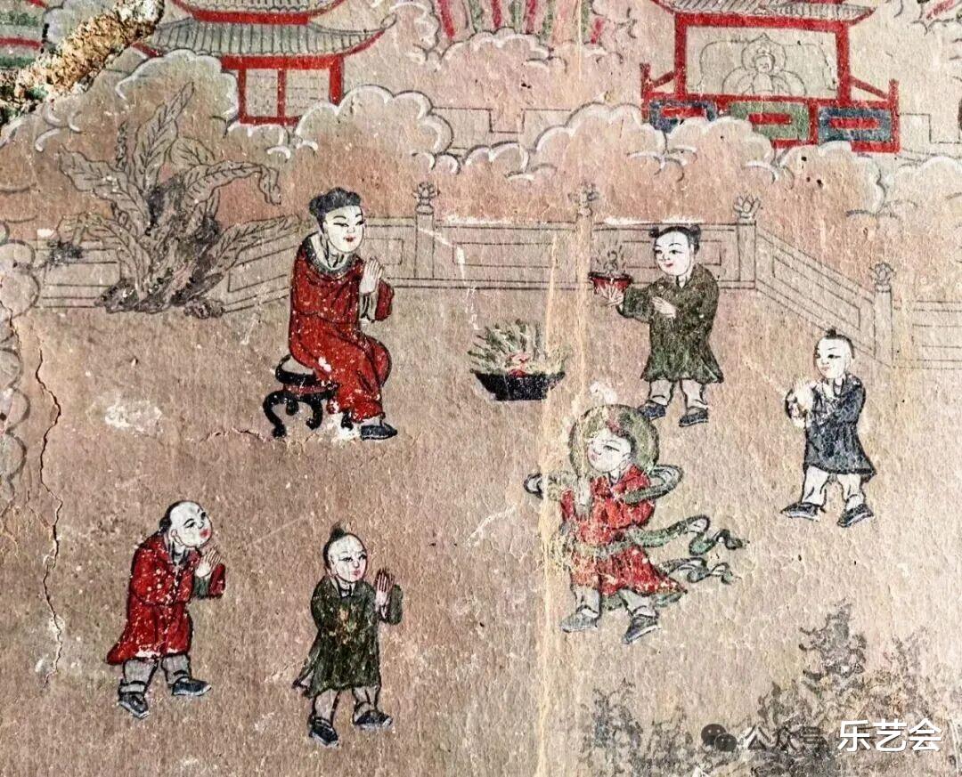 1、金代岩山寺壁画鬼子母经变在金代岩山寺壁画中,有鬼子母经变系列连相。其中有一幅著名的鬼子母与众小孩在一起的画面。这就使得,群孩嬉戏的含义,有了特定的取向,他是为某种其他的主题服务配套的。在壁画中,小孩子的存在,就是为了给鬼子母的庇护众孩,提供要素支持,所以画面不再仅仅表示孩子天真欢乐的吉祥主题。而鬼子母也不是寻常妇女,她与丈夫都是神灵,尤其在皈依佛教之后,已经成为庇护小孩的佛教神灵。