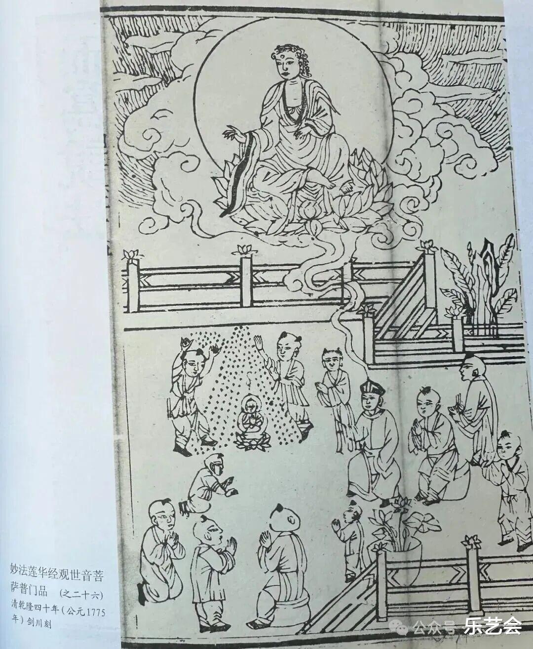 二郎花钱 心心藏品2、妙法莲华经插图《观世音菩萨普门品》(原文见《妙法莲华经》第二十五)姚秦三藏法师鸠摩罗什译。其中有云:......若三千大千国土,满中夜叉、罗刹,欲来恼人,闻其称观世音菩萨名者,是诸恶鬼,尚不能以恶眼视之,况复加害。......佛告无尽意菩萨:“善男子,若有国土众生,应以佛身得度者,观世音菩萨即现佛身而为说法。应以辟支佛身得度者,即现辟支佛身而为说法。应以声闻身得度者,即现声闻身而为说法。......应以小王身得度者,即现小王身而为说法。应以长者身得度者,即现长者身而为说法。应以居士身得度者,即现居士身而为说法。应以宰官身得度者,即现宰官身而为说法。应以婆罗门身得度者,即现婆罗门身而为说法。应以比丘、比丘尼、优婆塞、优婆夷身得度者,即现比丘、比丘尼、优婆塞、优婆夷身而为说法。应以长者、居士、宰官、婆罗门、妇女身得度者,即现妇女身而为说法。应以童男、童女身得度者,即现童男、童女身而为说法。