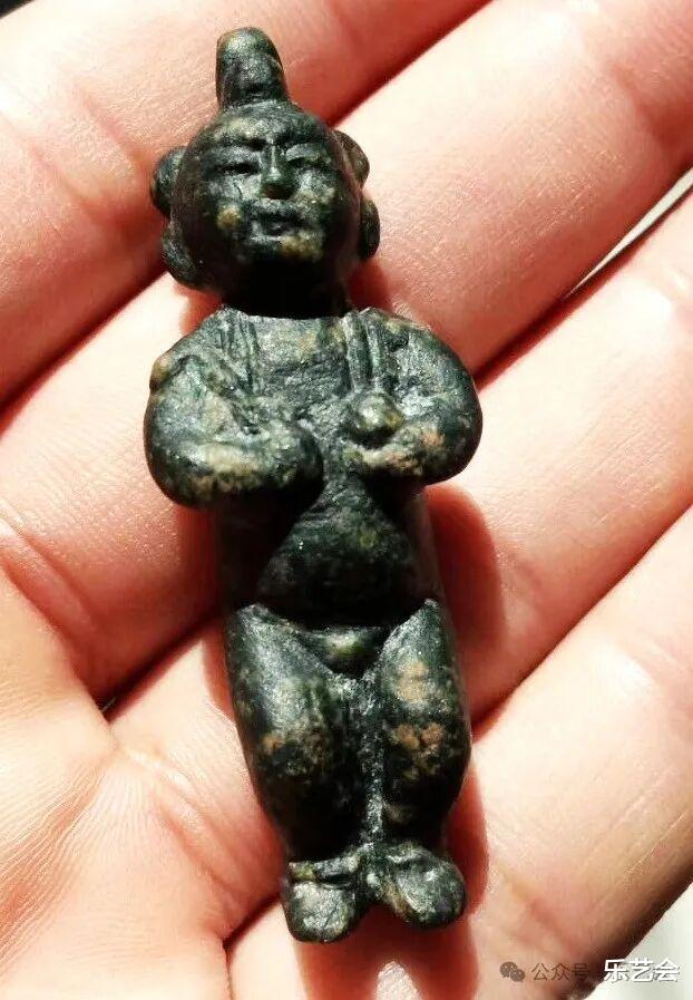 这种一手球杖,一手丸球的造型也见诸于诸多文物中: