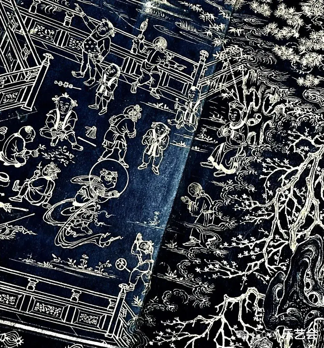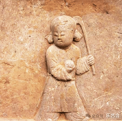 宋代捶丸童子图像也不在少数,岱庙宋代石刻一共十四帧,是在岱庙西城墙修复工程中出土的,以儿童为主角表现了《东京梦华录》、《梦粱录》等宋代笔记里的百戏伎艺,例如踢瓶、玩鼓,狮戏等,其中就有一幅女童捶丸的石刻画面。见下图: