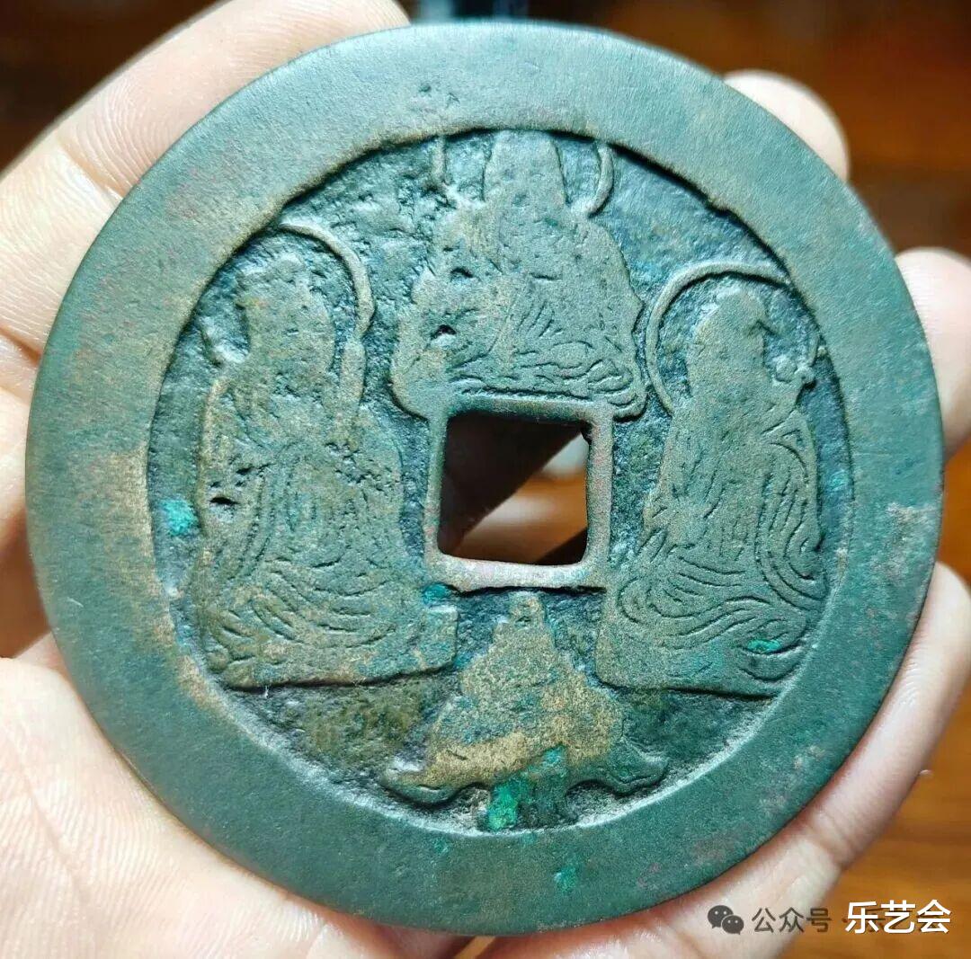 这与本文所聚焦的庭院花钱完全契合,因为本花钱中也是在空隙处点缀杂宝,大家可以看到,在正常的反映人间庭院生活的画面中,无论是纸本,还是铜镜花钱,大多无杂宝点缀,而在诸如佛教文化的妙法莲花经,五十三参插图的庭院婴戏图画中,则多见杂宝点缀的特点,所以,杂宝也许未必一定对应财宝,但大致为超越普通凡人生活的表达。在研讨妙法莲花经庭院画面与五十三参庭院图像的时候,乃至在探讨鬼子母庭院画面的时候,不管是向佛祖皈依的鬼子母,还是妙法莲花所对应的观世音,还是五十三参的文殊菩萨。他们都有一个共同的特点,都是佛教文化范畴的话语。那么,本文所聚焦的庭院花钱,他的文化属性又是什么呢?这个时候,我们需要关注花钱的另一面,神灵的组成。