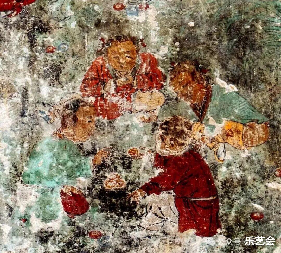 甘肃瓜州榆林窟中唐第15窟南壁壁画中儿童打球图