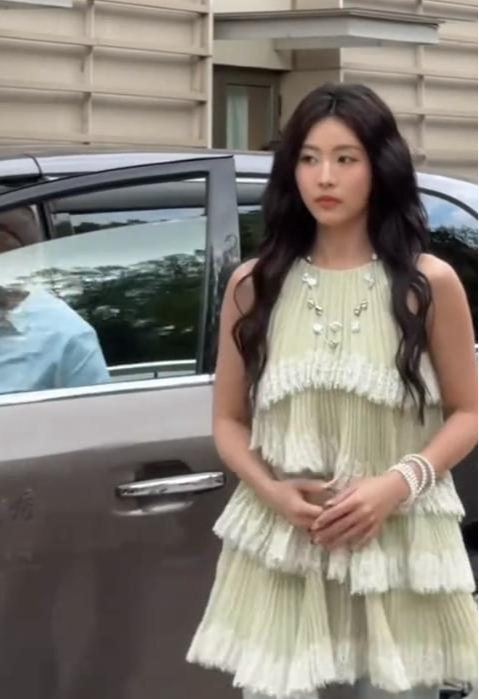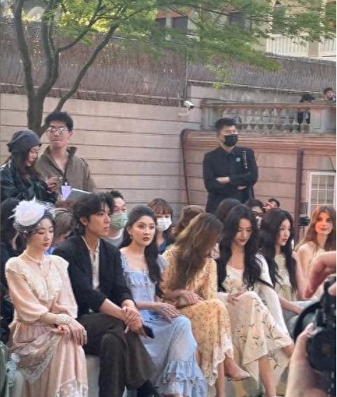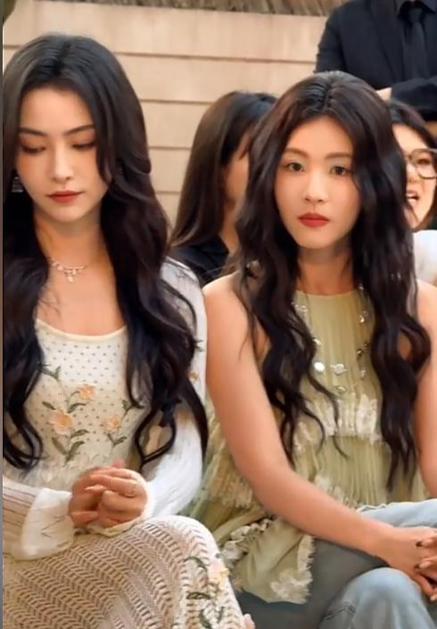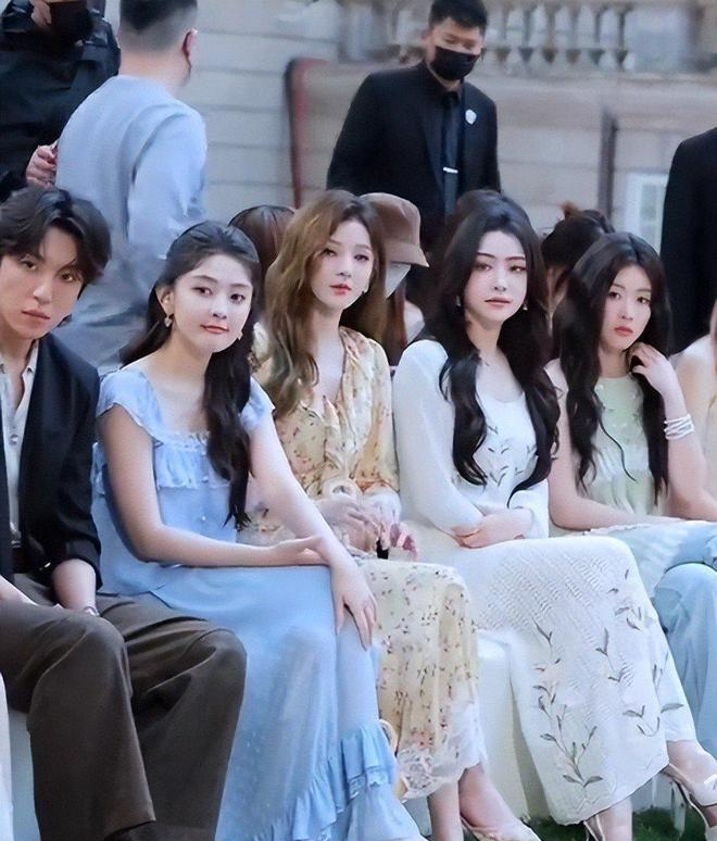 在看秀时,她的表情还是一副高高在上的状态,身边的张予曦、梁洁更自然些。