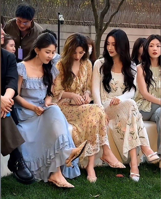 当工作人员穿着还是皮衣长裤时,梁洁、张予曦、许佳琪、阿诺等人,穿的是清凉的裙子。
