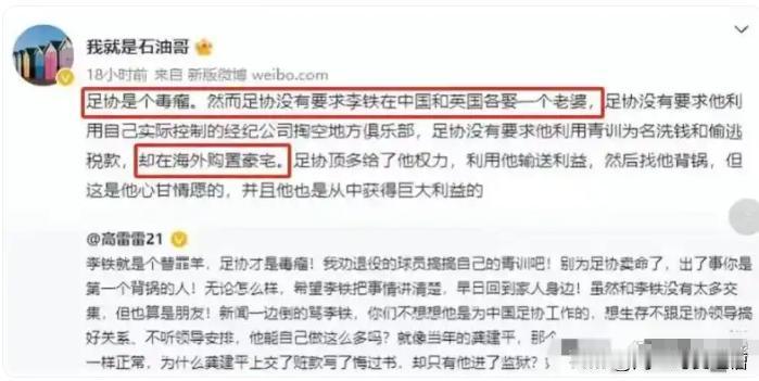 李铁,20年的铁窗生涯坐定了!没有任何的反转和回旋余地,真是人如其名。家人给他起“李铁”这个名字,估计就是希望他的身体像铁一样结实,而不是希望他有20年的铁窗生涯! 谁能想到呢,他凭着结实的身体进入了足球队,却利用职务之便大肆敛财,没有一丝的家国情怀,完全为了个人利益。有了钱就开始让家人到国外享受快乐的生活,一副纸醉金迷的样子。 我们的足球之所以不能进入世界杯,就是被这种蛀虫掏光了。有实力的但没钱的球员不让上场;没实力的只要给钱就能上!讽刺不? 人一旦没有了底线,真的连牲畜都不如了。 铁子给我们的足球事业带来这么大的伤害,竟然还想通过二审减刑,毫无愧疚之心反省之意。 既然那么怕坐牢,当初为何不设想自己被查到的这一天呢? 有意思的是他的老婆龙菲,得知他出事后,立马与他划清界限,带着娃在国外过着无忧无虑的日子。 本来交钱可以减刑,但他的老婆不愿意交钱,不知道李铁在里面得知这个消息,会不会吐血? 自己“冒天下之大不韪”搞点钱,都给了老婆孩子,而关键时刻老婆却不愿意出手救他。 等铁子出来的时候,已经60出头了,那个时候,他和龙菲的两个女儿也快40岁了,老婆不管他,女儿不可能不管他,毕竟给她们留了这么多钱。 总之,哪怕他在里面20年,出来的时候,仍然打败了90%的人,讽刺吗? 据说,他在英国还有一个妻子,有一个儿子。出来后,还可以在国外享受齐人之福。 这就是现实!