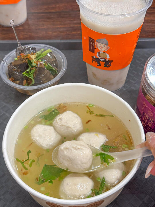 可以在这家开了八十年的老店解决一日三餐 早起一杯花生汤➕油条或者炸枣 如果是冬天热的花生汤加个鸡蛋更好喝了! 夏天冰镇花生汤也是很舒服~解渴还顶饱! 午餐可以来份厦门海鲜炒粉➕鱼丸汤 粉丝找的油润润的~还加了很多蔬菜!虾个头很大还很新鲜!鱼丸汤Q弹好喝! 晚餐有清汤面沙茶面都很不错! 厦门人从小吃到大!很多周边的居民也经常来这解决正餐 花生汤真的喝不腻😋