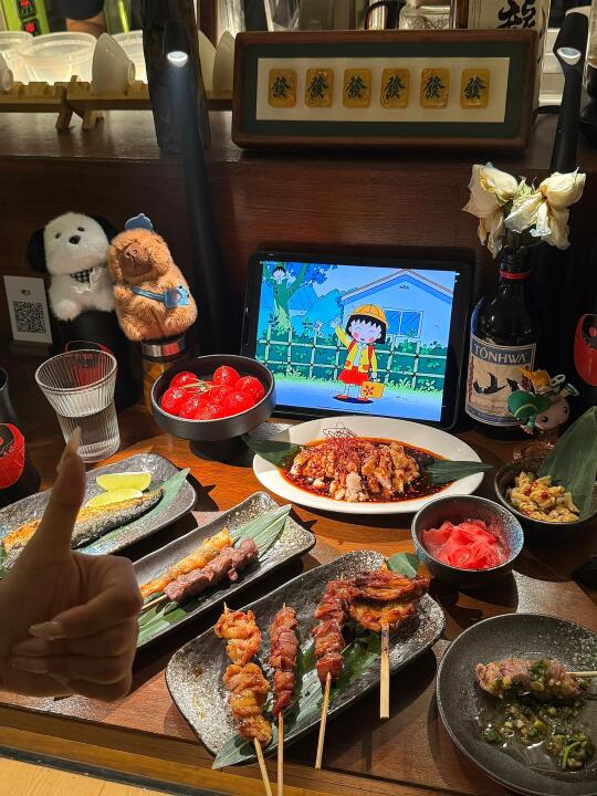 结束一天的疲惫 路过家楼下这家小店 感觉装修很特别 进去简直像是发现宝藏 这里很适合一人食或者三两朋友小聚聊聊天 进去点上几串烧鸟和下酒小菜 卤肉饭、中式串烧、椒麻鸡每一个都好吃 🈚️踩雷 在深夜食堂的烟火气中短暂忘却成年人世界的烦恼