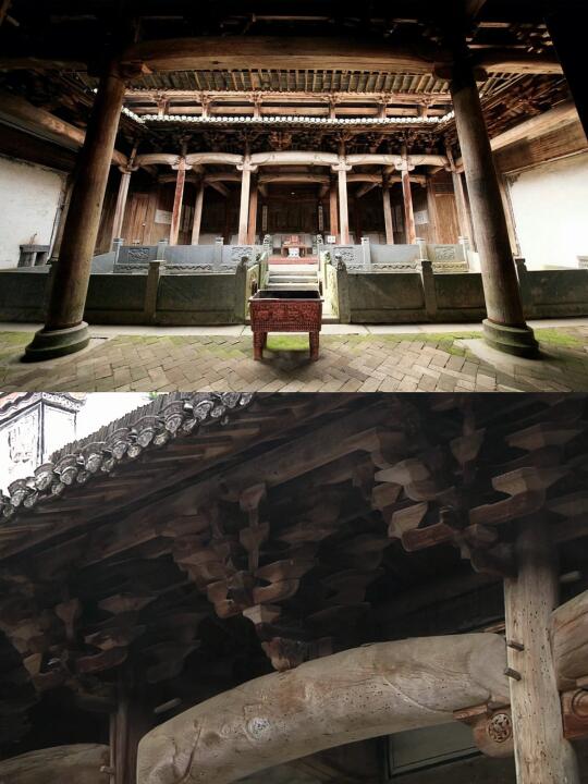 渚口村+贞一堂+一府六县——触摸明清古建肌理,解码千年宗族文化 1. 渚口村:始建于北宋的渚口村,三面环水、一面靠山,因形似“铜锣”得名,又名“锦城”。这里是倪氏家族的聚居地,唐乾符年间始祖倪康民因抗黄巢有功受封,其后裔迁居于此,传承千年文脉。村内现存11幢古民居、2座祠堂,以及采茶扑蝶舞、十番锣鼓等非遗文化,2014年入选中国传统村落名录。 • 2. 贞一堂: 作为倪氏宗祠,贞一堂始建于明代,历经清初战火、1910年火灾,现存建筑为1912年重建,被誉为“徽州民国第一祠”。祠堂以108根立柱象征“天罡地煞”,门前18对旗杆石记录着倪氏科举功名的辉煌,文革时期村民为保护文物,将石鼓沉入河底,成为宗族凝聚力的见证。 • 3. 一府六县: 清同治进士倪望重耗时十年建造的宅第,占地1600㎡,耗银万余两。其建筑布局以“一府(正厅)六县(起居厅)”呼应徽州一府六县建制,暗合倪望重历任浙江五县知县的经历。宅内曾设“万卷楼”藏书,现虽藏书散佚,但雕梁画栋仍述说着诗书传家的传统。 --- 🏯 建筑解码: 贞一堂: - 结构:三进七开间,含门楼、享堂、寝堂,天井设防火水池,雕刻“鲤鱼喷月”“松鹤延年”等图案。 - 斗拱象征:正厅斗拱雕刻象头与母狮,寓意“封侯拜相”与家族尊贵。 - 旗杆石鼓:现存18对石鼓,最大者刻“进士”二字,彰显“科举立族”的传统。 • 一府六县: - 功能分区:府厅用于宴客,县厅供日常起居,花厅为读书雅集之所,厨房以高墙隔离防火。 - 三雕艺术: - 木雕:梁头“汉纹钩”榫接回廊,厢房窗棂刻历史故事; - 石雕:院中白砾石嵌“伏地花鹿”,隐喻“禄在其中”; - 砖雕:门楼飞檐翘角,饰以麒麟送子、龙凤呈祥。 --- 徽州非遗游学之旅,其中一天我们就放在了渚口村,跟随专业导师的脚步,错高峰探秘明清古建筑🏘️
