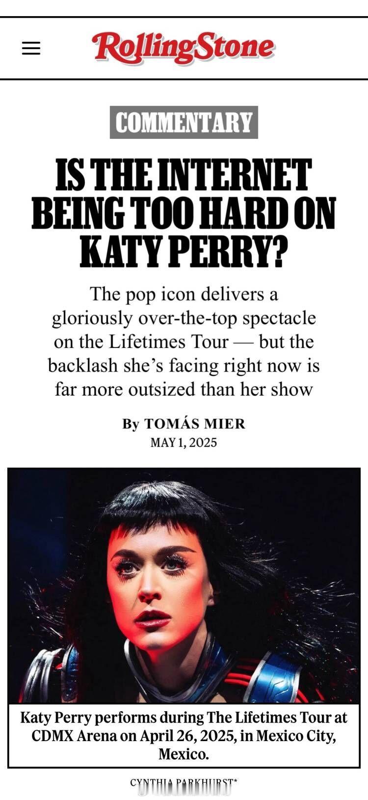 现在欧美同期的五大天后里,事业最差的是水果姐Katy Perry吧?滚石杂志刚出了一篇文章,呼吁网友们不要对她过于苛刻。