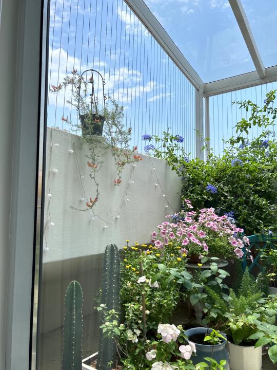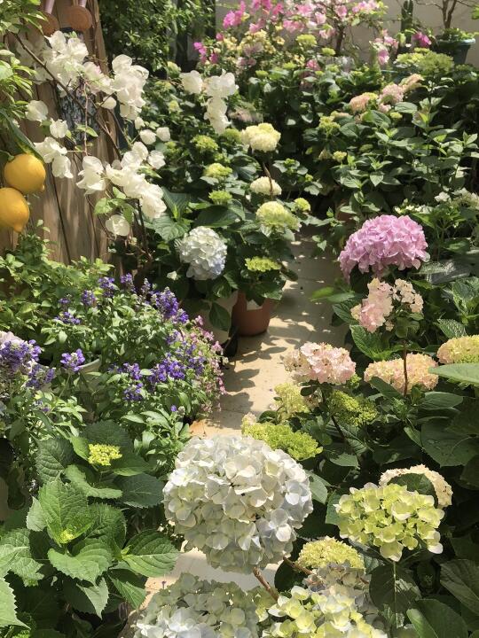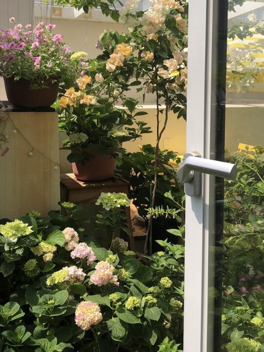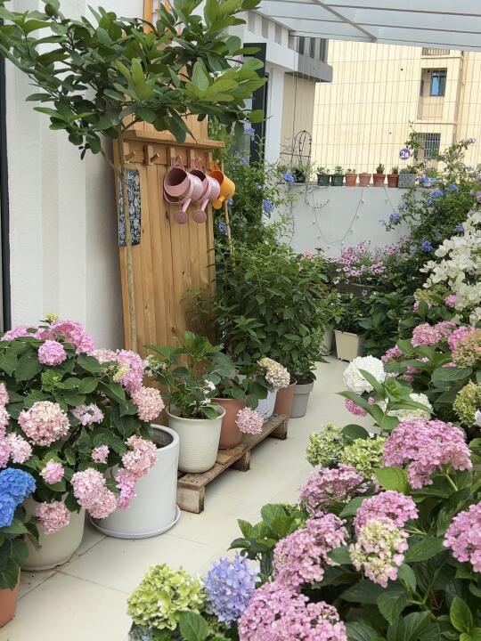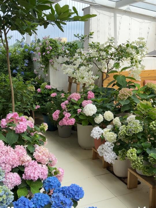 阳光房养花一年多,就……已经塞不下了! 绣球、三角梅、蓝雪花、各种草花长得太快了!已经把整个阳台占满了!