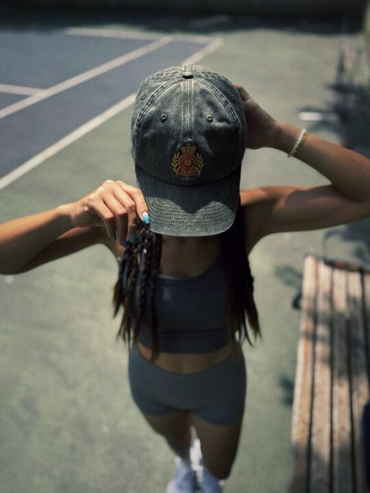 训练结束路过涂鸦墙,摘下帽子扇风的瞬间,汗湿的发梢被夕阳镀成金线。突然觉得这顶帽子像某种时光介质——晴天是温网奶油色的矜贵,阴天又变成纽约街头被雨淋湿的静物画。