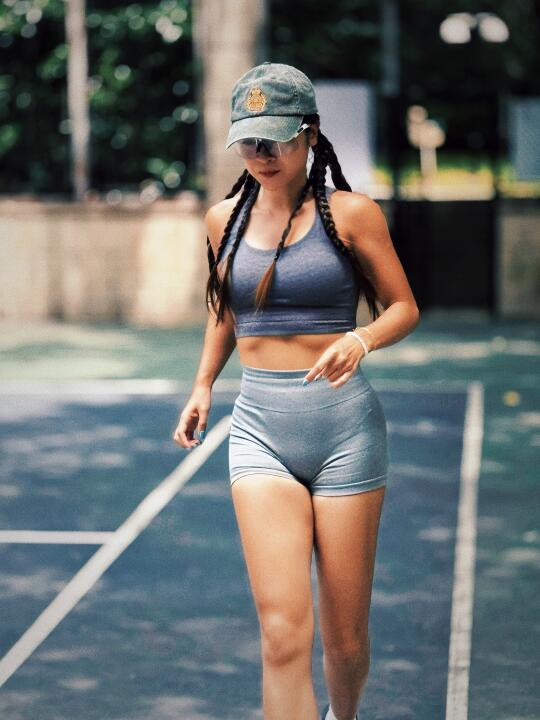 ▫️ 发球时被风吹乱的碎发,卡在帽檐与额头的缝隙里