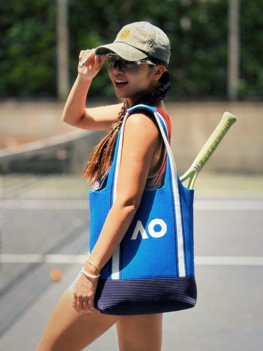 和AO 澳网球包并置时,水洗灰像被南半球海风褪了色,旧时光的毛边感呼之欲出。