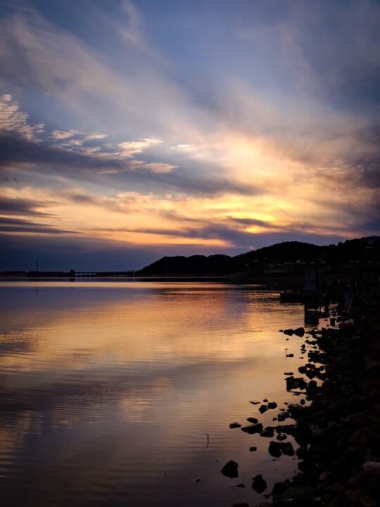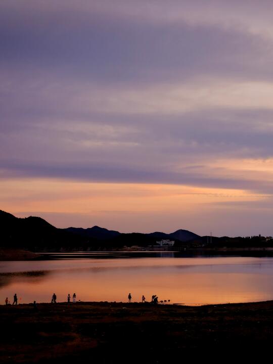 傍晚可散步到金海湖边,满天霞光把湖水染成蜜糖色!孩子捡石子打水漂,你只管拍油画感大片!(18:30左右光线最温柔)
