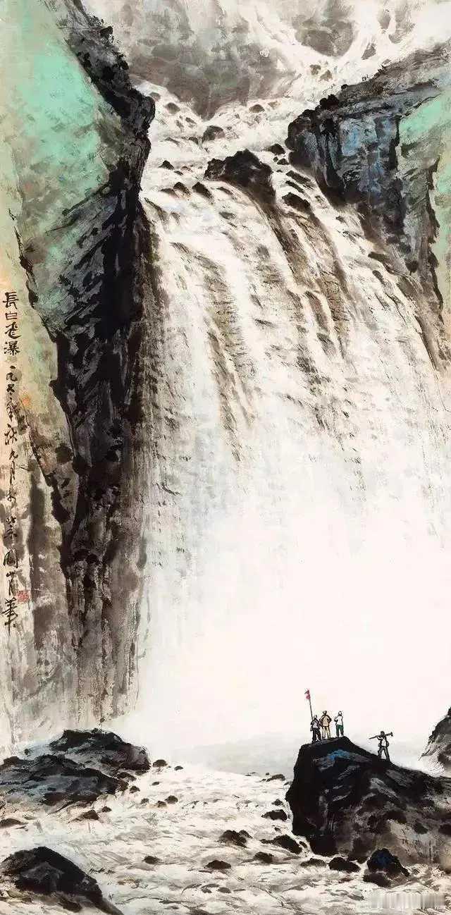 关山月画瀑布。关山月(1912-2000)是我国著名的国画家、教育家,岭南画派代表人物,他山水、花鸟、人物皆能,尤以画山水及梅花见长。