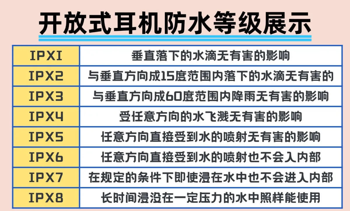 如果你经常戴着耳机运动、跑步,防水性能必不可少。一般来说,IPX4 级防水就能满足日常防汗需求;如果需要在雨天或进行高强度水上运动时使用,则要选择IPX5 级以上的产品。需要注意的是,防水等级越高,耳机的耐用性越强,但同时也要避免长时间浸泡在水中,以免影响使用寿命。