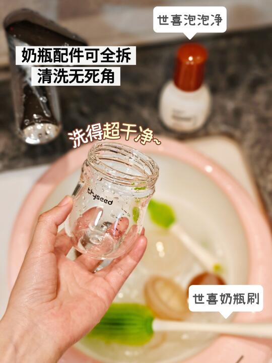 宽口径设计,泡奶、清洗都超方便,洗完开水烫、或者放入消毒柜都可以
