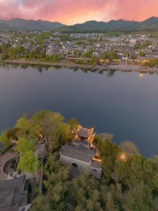 ▫️建筑如宣纸层层堆叠,倒影入水成墨,远山作画,随手拍都是《千里江山图》的既视感!
