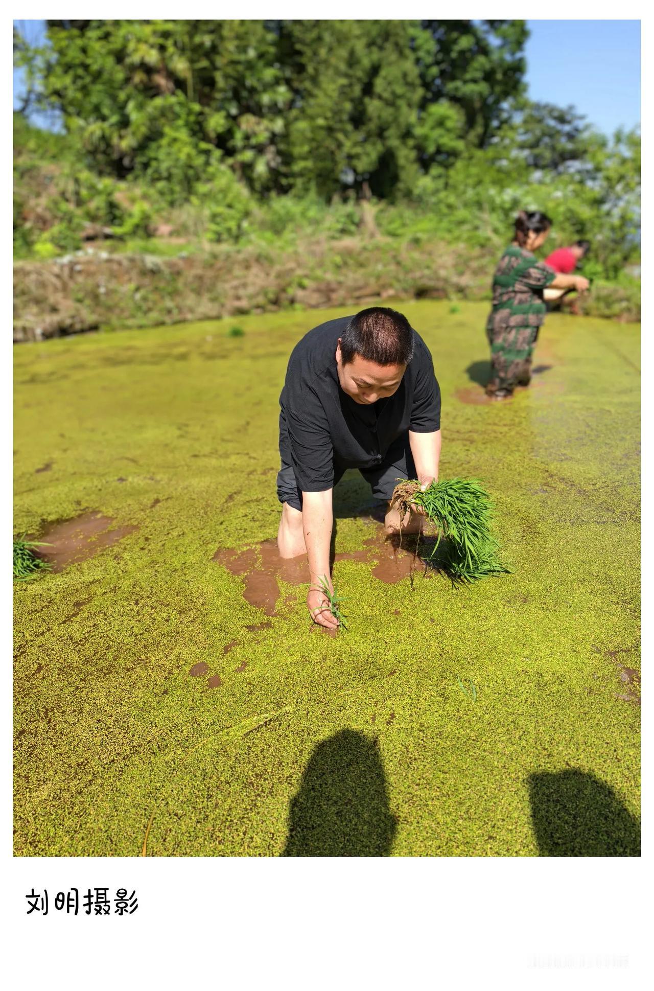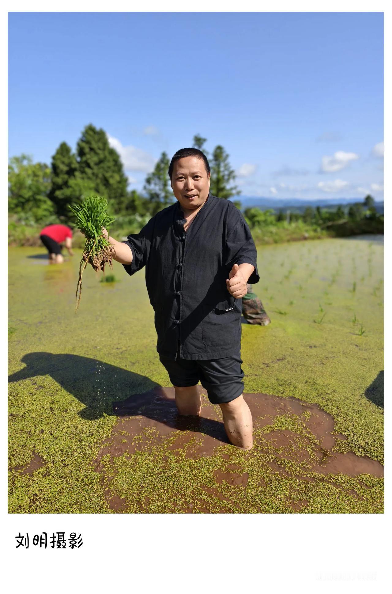 今天上午,我来到龙头山下的大妹刘群家帮忙栽秧。踏入田间,湿润的泥土气息扑面而来,勾起了我尘封已久的回忆。作为一个许久未碰农活的人,心里不免有些忐忑,不知是否还能重拾这份技能。 下到田里,清凉的水漫过脚踝,密密麻麻的浮萍在脚边散开。用手一摸,发现水中还藏着不少田螺,圆溜溜的壳在阳光下泛着微光。我深吸一口气,弯腰拿起秧苗,小心翼翼地插入泥土中。原以为会很生疏,没想到动作竟渐渐熟练起来,看来有些记忆是早已刻进骨子里了。 田里,一大家人有说有笑,欢笑声在田间回荡。大家动作娴熟,你追我赶,不一会儿,两丘田就插满了嫩绿的秧苗。劳作间隙,我突然想起唐代布袋和尚的《插秧偈》,便即兴给大家背诵起来:“手把青秧插满田,低头便见水中天。心地清净方为道,退步原来是向前。”这诗应景极了,栽秧时看似在不断后退,实则是在一步步向前的。 洗脚上岸时,望着这片刚栽好的稻田,嫩绿的秧苗在水中挺立,充满生机与希望。人生何尝不是如此?每一次的努力与付出,就像这插秧,看似辛苦,看似在后退,实则是在为未来积蓄力量。人生如稻,只要脚踏实地,用心耕耘,等到秋天收割时,定能收获满满。