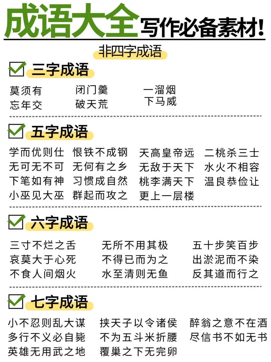 成语大全|小学语文必学的成语|积累作文素材|||成语在语文学习中占据着极为重要的地位。对于孩子们而言,熟练运用成语不仅能让自己的语言表达更加精妙,为作文增添光彩、提升分数,还能透过成语典故,汲取古人的无穷智慧,可谓一举两得。