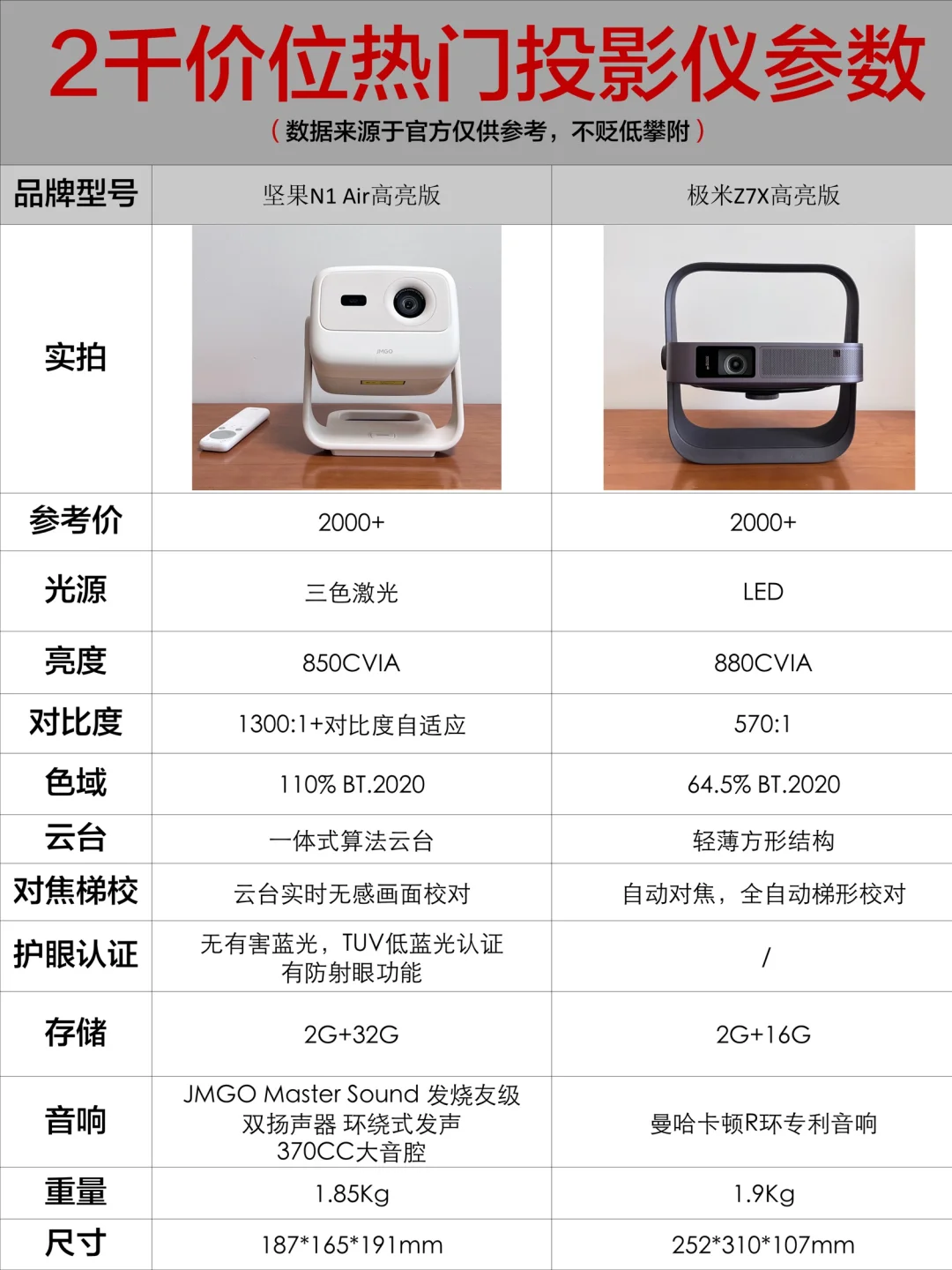 🌈做了功课,选了2千价位的热门机型:坚果N1 Air高亮版与极米Z7X进行实测,两款各有优点!