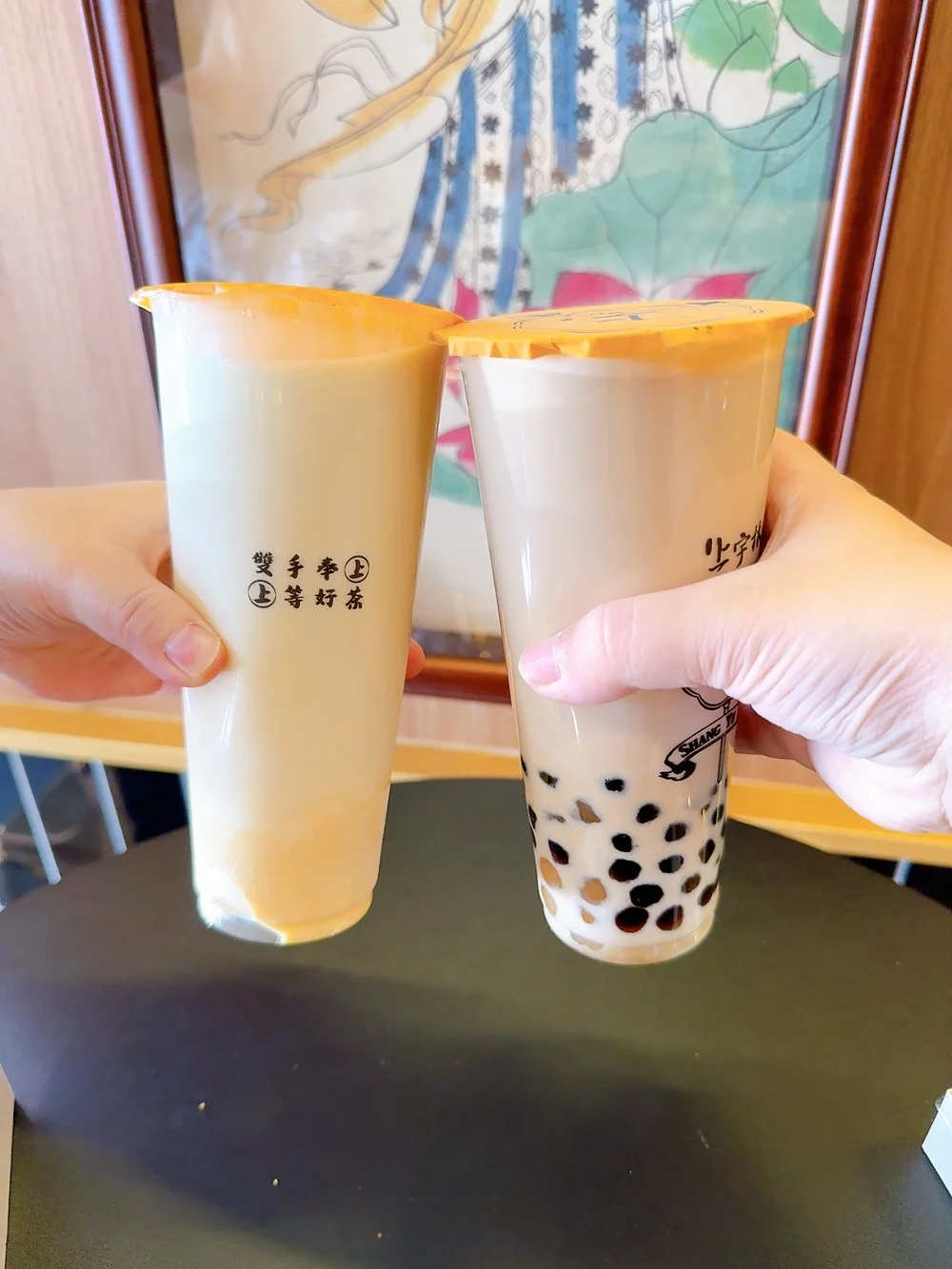 🌟奶茶(图5)我点的冰淇淋奶茶太解暑了!夏天喝好幸福,茶底要的白桃乌龙。队友点的太极鲜奶茶,里面有珍珠和粉角,很Q弹,都要的三分糖感觉正好
