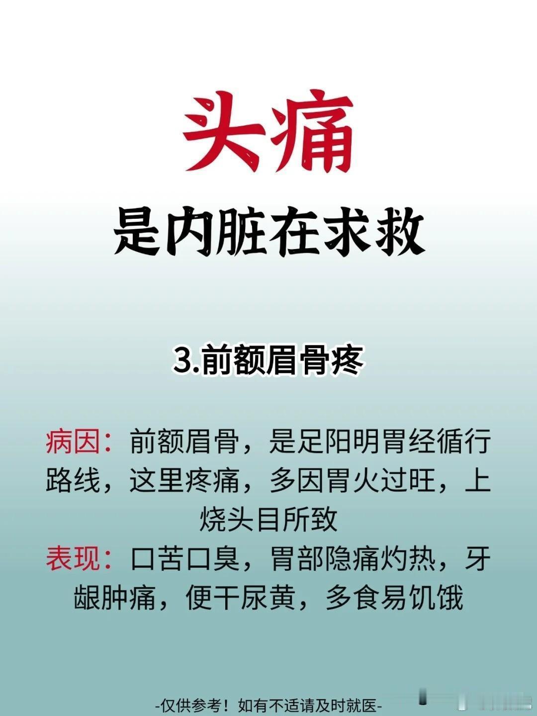 头痛是内脏在求救健康科普 1.头顶痛2.后脑勺胀痛3.前额眉骨痛4.两侧痛