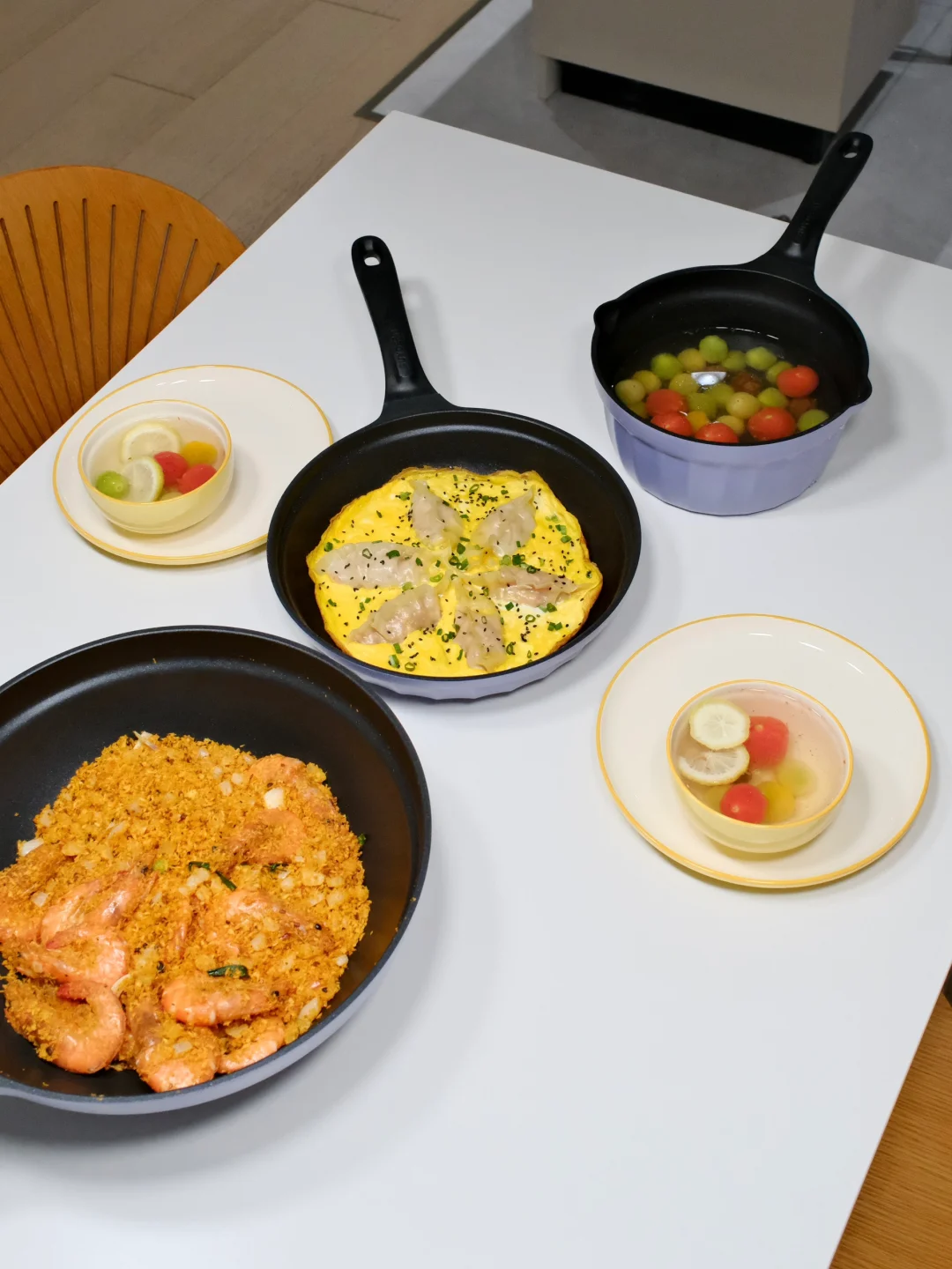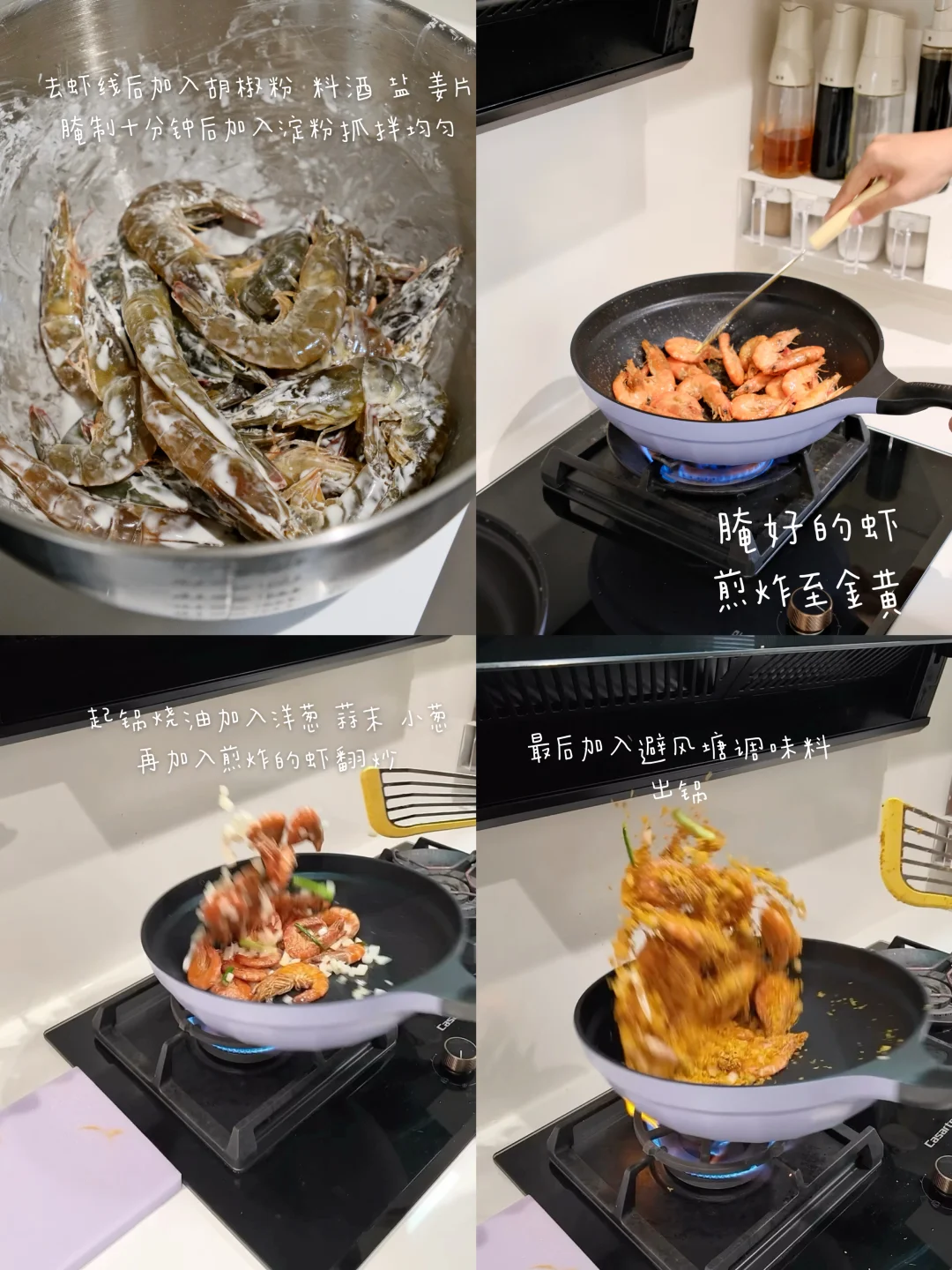 我用它做了避风塘炒虾,加厚锅底受热均匀,虾不容易糊底 ;中心聚油,少量的油就可以把虾煎到金黄,少油烹饪更加健康~